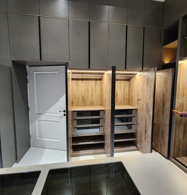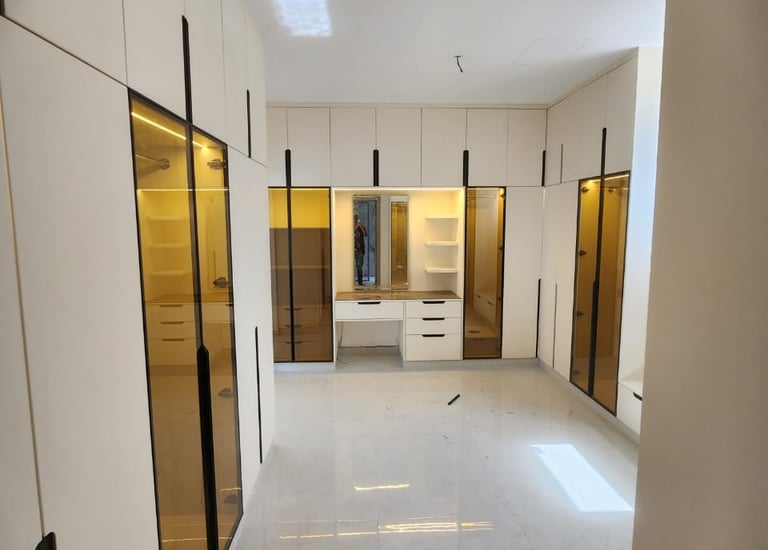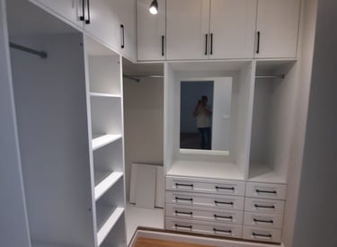 نقدم في وايت هاوس خزائن ملابس مخصصة تجمع بين التصميم العصري والعملية العالية، مع استغلال ذكي للمساحات وجودة تنفيذ تدوم لسنوات. نعمل على تصميم خزائن تناسب غرف النوم، غرف الملابس، والممرات، مع خيارات متعددة للألوان، المواد، وأنظمة التخزين.