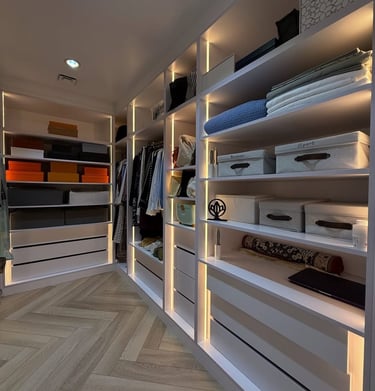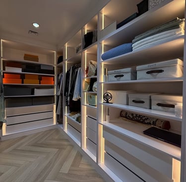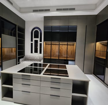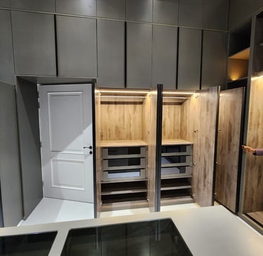 حلول مخصصة لكل مساحة، مع توزيع عملي للأرفف والأدراج لتعظيم الاستفادة وتنظيم المحتويات بسهولة.