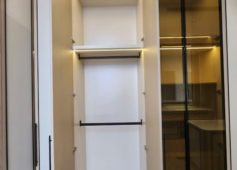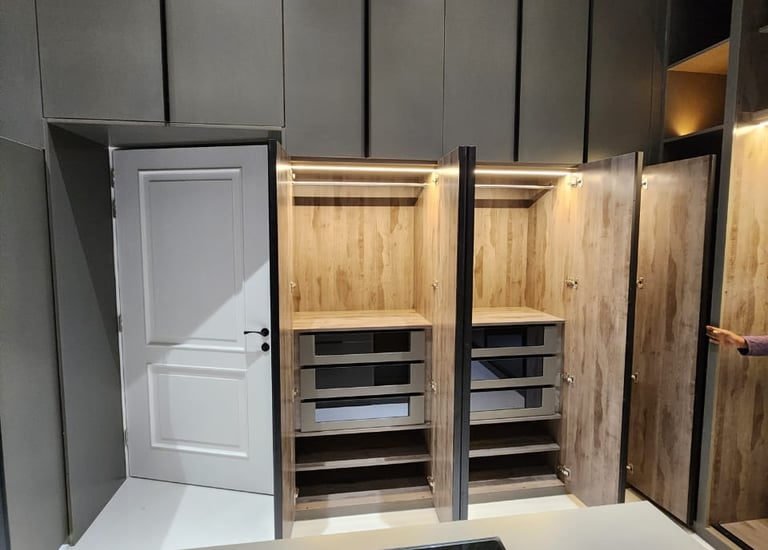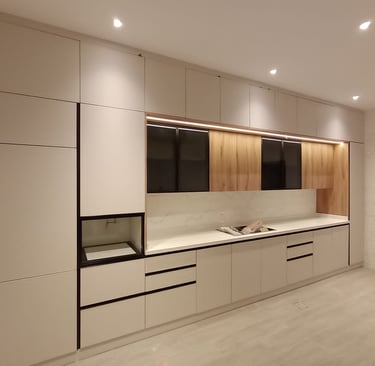 نصمّم حلول تخزين مبتكرة تساعد على استغلال المساحة بأفضل شكل ممكن، مع تقسيمات داخلية عملية تسهّل الاستخدام اليومي وتحافظ على ترتيب المطبخ.